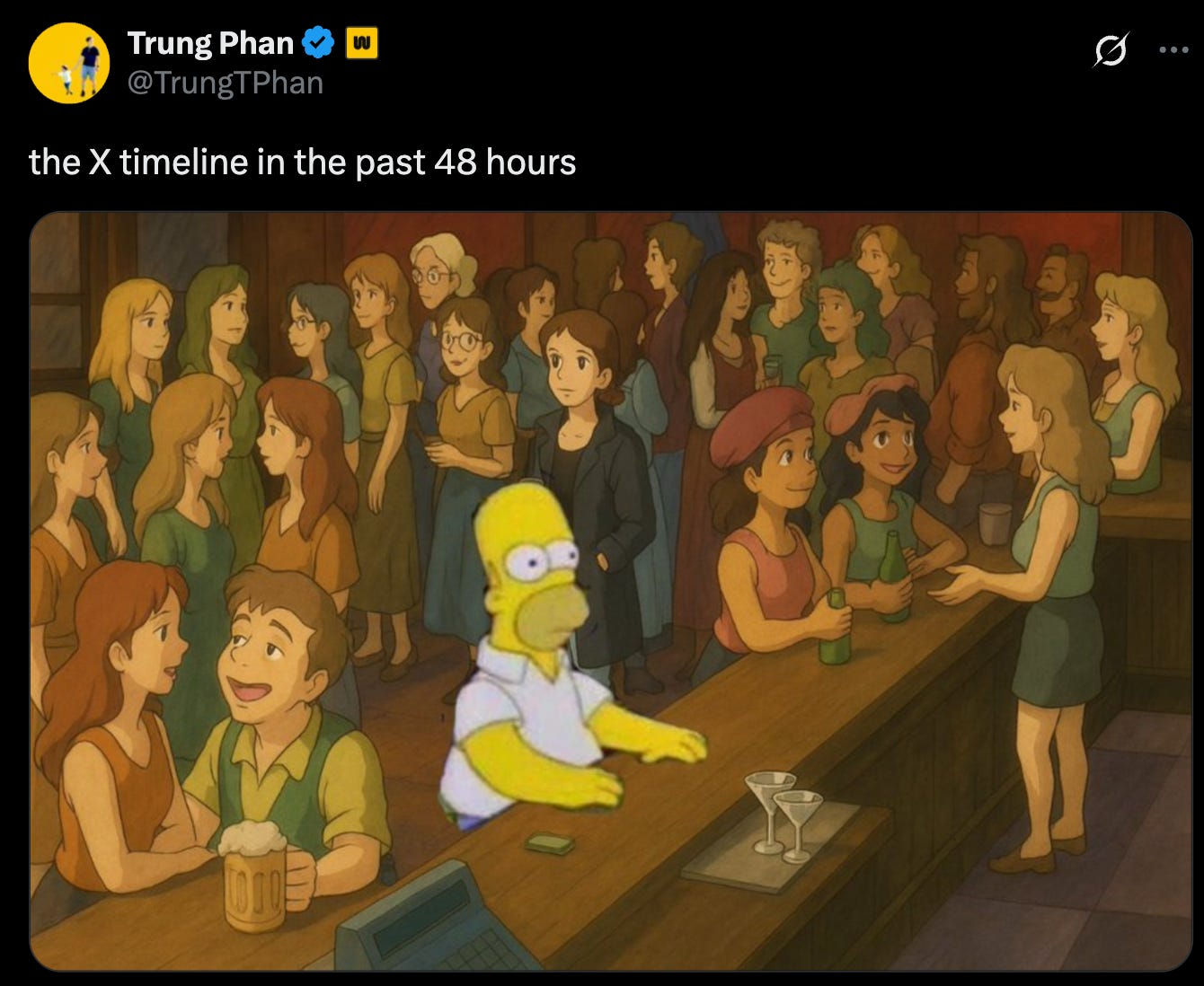 The Studio Ghibli memes popped off in late-March shortly after OpenAI released a new image generator. It happened a few days after the nuclear-viral Ashton Hall morning routine meme. Each of these memes had a solid 72-hour lifespan, which is very long on the internet in 2025. Another one that reached these heights of meme intensity was Astronomer’s CEO/Head of HR getting caught canoodling at the Coldplay concert.