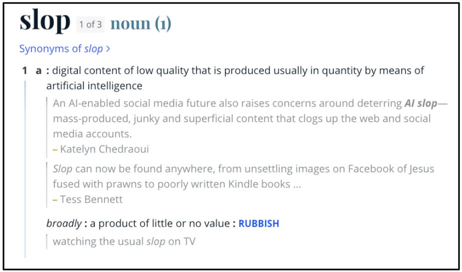 The Economist and Merriam-Webster both named “slop” the word of the year, nodding to the flood of AI-generated content.