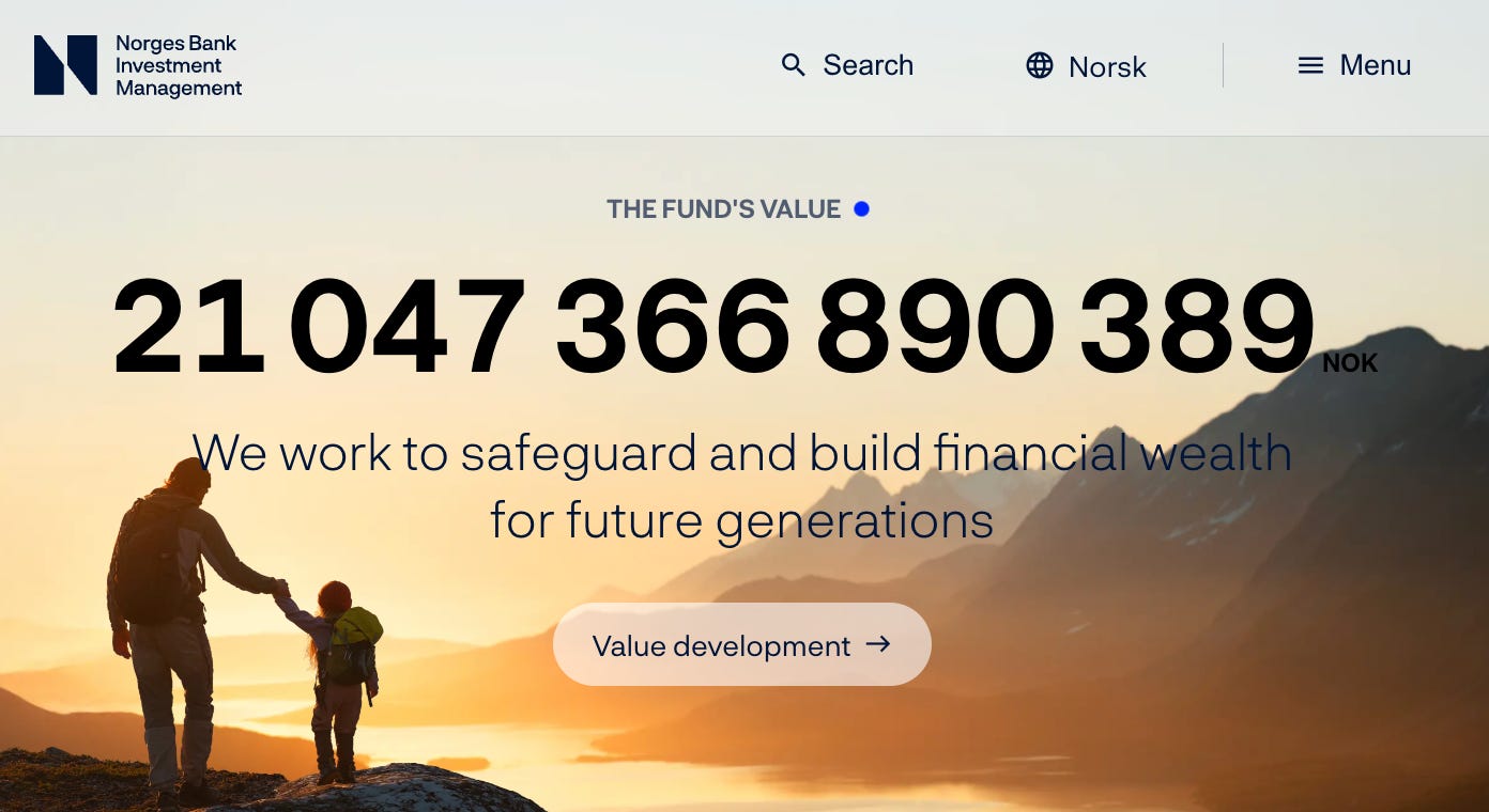 For Norway, the Olympics sporting success maintains a streak of impressive counting stats, including a dynamic UX landing page for its sovereign wealth fund (which keeps real-time tracker of value).