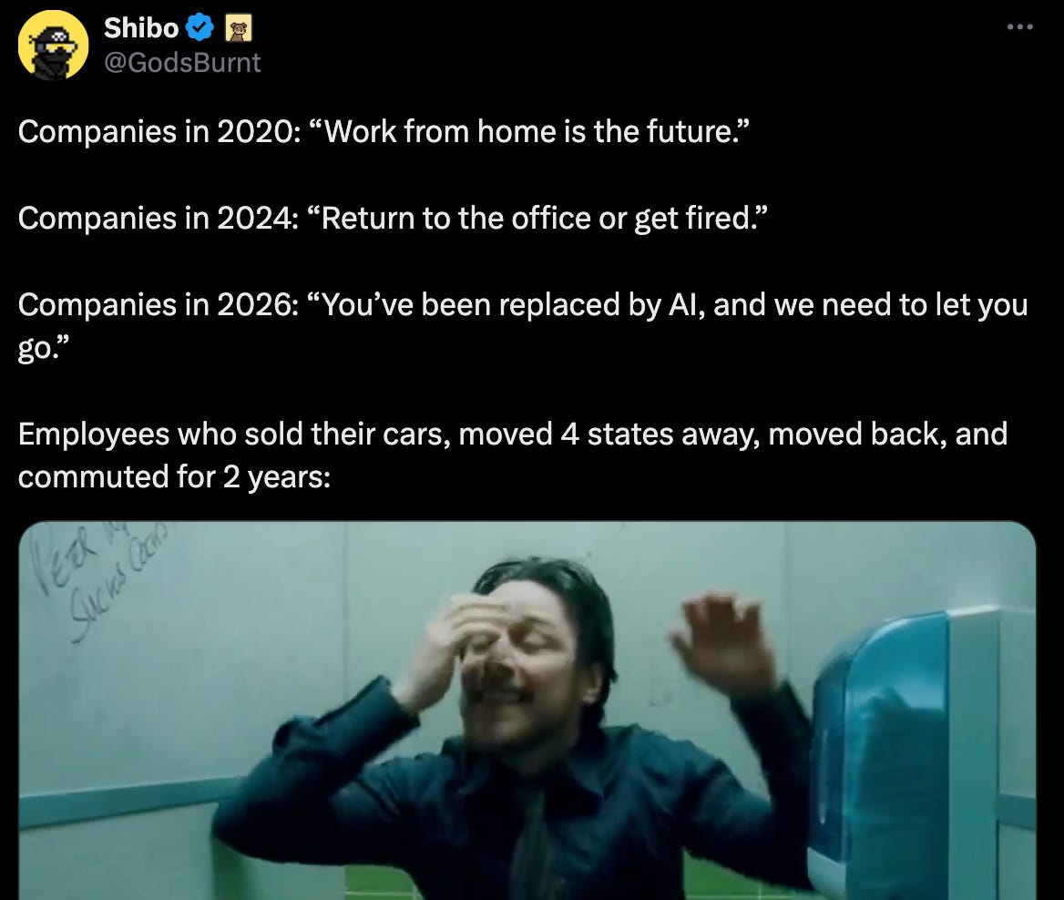 The timeline filled with competing takes on whether it was a proper rightsizing after mismanagement (recall that Dorsey ran Twitter and that company is now 80% smaller in terms of headcount post-Elon). Or if the Block cuts were truly for AI efficiency gains.