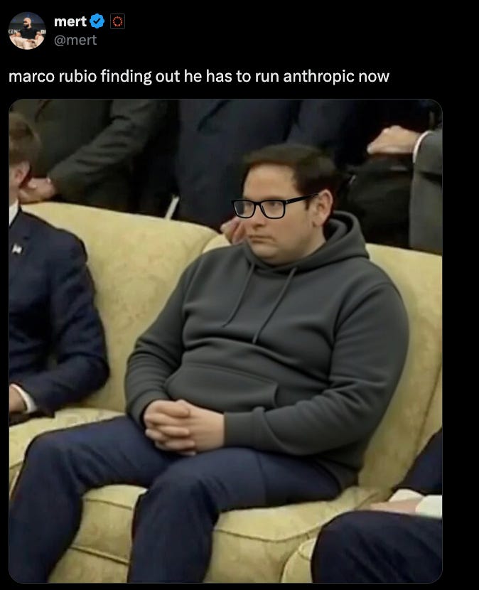 Dario Amodei may still continue discussions in coming days. But, right now, Anthropic is on the way out and the implications are massive. The government is only responsible for $200m of Anthropic’s total $15B+ revenue. But any contractor working with the government may have to choose between that public contract and the AI lab.