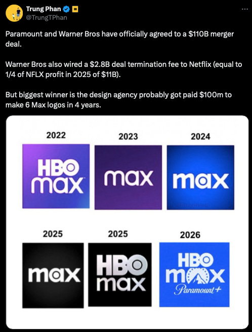 As discussed on the The Town podcast, this deal will have to still go through anti-trust review but the Ellisons closeness to the current White House suggests they’ll pull it off. European and state regulators can still gum it up, though.
