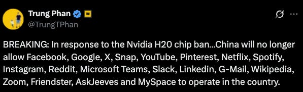 Another challenge is that the government has had to narrowly define Meta’s competitive landscape. The “personal social networking services” classification was more relevant when the OG Facebook was primarily a “friends and family network”. That explains why the government identified Meta’s main competitors as Snap and…MeWe (?!?!?!?!). Meta is much more a general entertainment product now including hyper-targeted infinite scroll videos and a lot of AI-generated shrimp Jesuses.