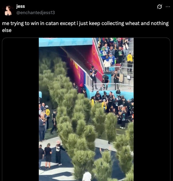 Between Bad Bunny and the AI ads, my main takeaway from Super Bowl LX is that dressing as a tree during a live musical performance will be one of the only jobs left for humans when AGI hits.