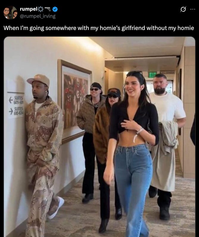 Bad Bunny apparently asked Drake to join his performance. They’ve known each other for nearly a decade and made the incredible banger “MIA” back in 2018. But Drake thought his presences would have been a distraction and perceived as some clapback at Kendrick. “MIA” is actually the only Bad Bunny song I know and was pretty choked that he didn’t sing it at the Super Bowl. It’s very good.