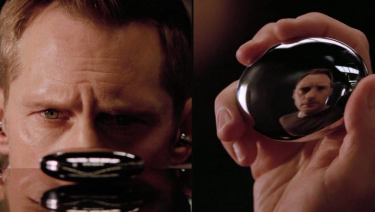 The biggest AI what-if is an apparent “leaked” OpenAI ad that was pulled from the Super Bowl. Lukas Matsson (Alexander Skarsgård) from Succession examines a Jony Ive-designed OpenAI hardware device. Called Dime, it looks like a metallic earbud and puck. Apparently, this was a hoax…but damn it looked cool.