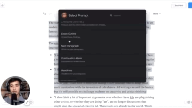 Based on a handful of people that have demo’d the product, the most popular prompt is for suggesting what to write next (as a way to break through writer’s block).