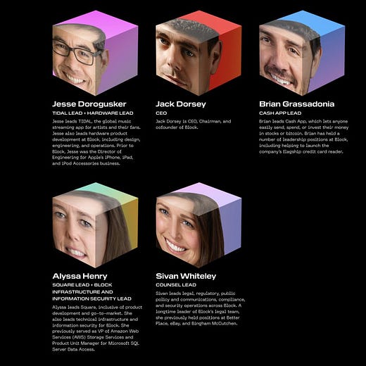 Block will house Square (merchant services), Cash App (consumer finance), SpiralBTC (platform for Bitcoin open-source projects), Tidal (music streaming) and TBD54566975 (I actually have no idea what this one is).