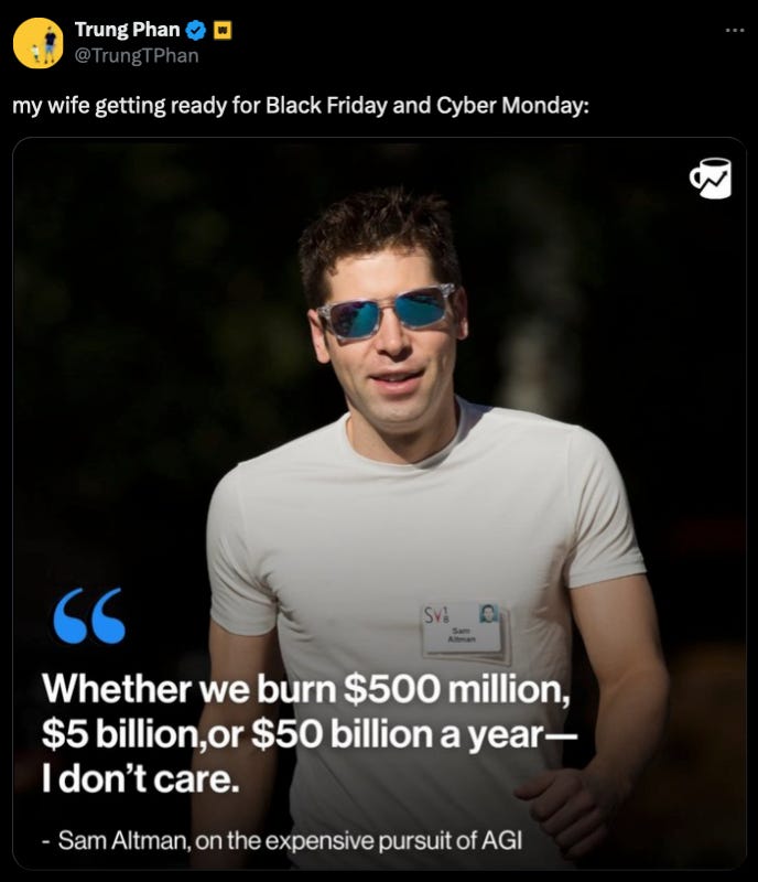 Nvidia’s Bad Week: Since becoming the first company to hit $5T, Nvidia has fallen by $700B. Its clearly feeling the heat from short-seller Michael Burry (Nvidia sent a memo to investors saying that it is “not Enron”, which is literally the first thing they teach you in Investors Relations not to do) and Google’s in-house TPU chips, which are very competitive and Meta may start using at scale (Nvidia sent a very insecure post about Google, which is the first thing they teach you in Corporate Social Media not to do). Nvidia is still far and away the AI chip leader, but when you become the most valuable company in the world during a bubbly period when investors are looking for any reason to dump…few slip-ups ain’t good.