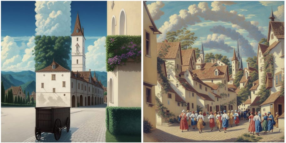 Another example — and one that Res Obscura thinks we will remember as one of the main AI “aesthetic” from 2020s — is the “spiral town” trend.