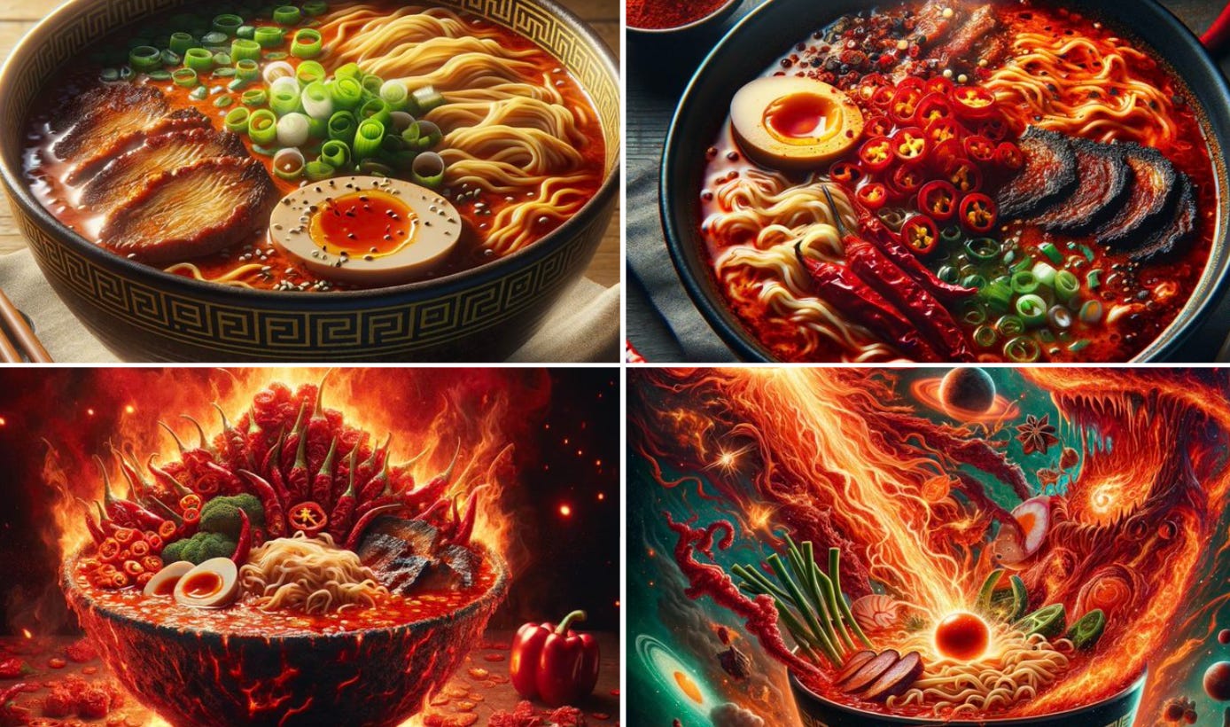 First is a recent trend called “make it more”. Basically, you generate an image of something (like Ramen) and keep prompting the model to make it “more” (spicy) and each subsequent photo gets wilder.