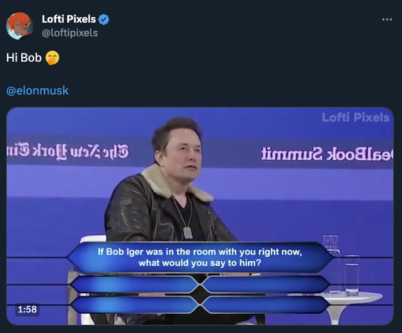 Finally, you probably heard that Elon went to the DealBook Summit and told advertisers that don't want to advertise on X that they should "Go F Yourself" and specifically called out Disney CEO Bob Iger. Well, someone turned that into a wild Who Wants To Be A Millionaire meme that went very very viral.