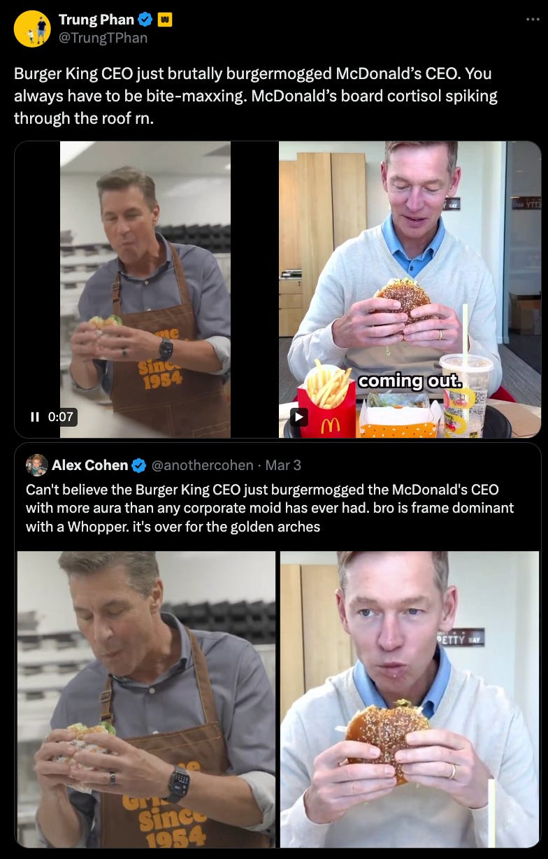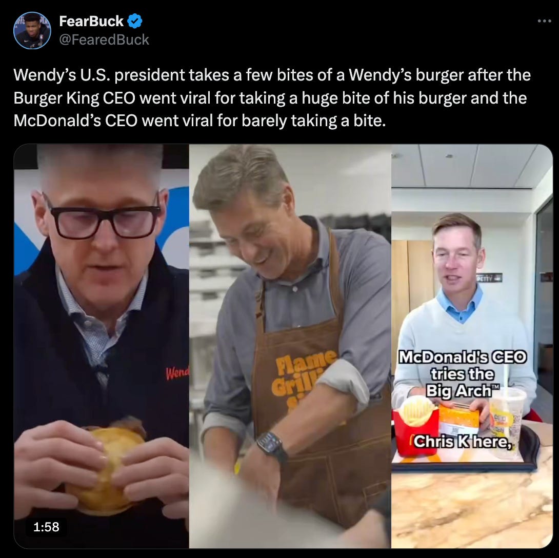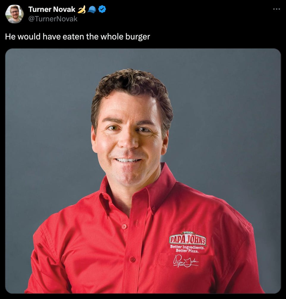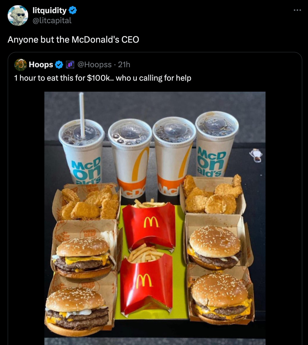 It’s rare to have founders still running these kind of things. The board’s really paying him to keep the trains running on time, not social posts. He’s trying whatever. It’s funny. Keep eating burgers bro. Give me more potential engagement.