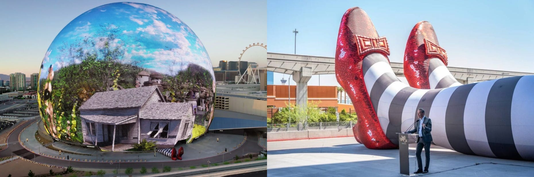 A recent example of the Exosphere at its best was during the debut of The Wizard of Oz last August. The classic 1939 film was adapted for the Sphere and the exterior made sure to let us know: