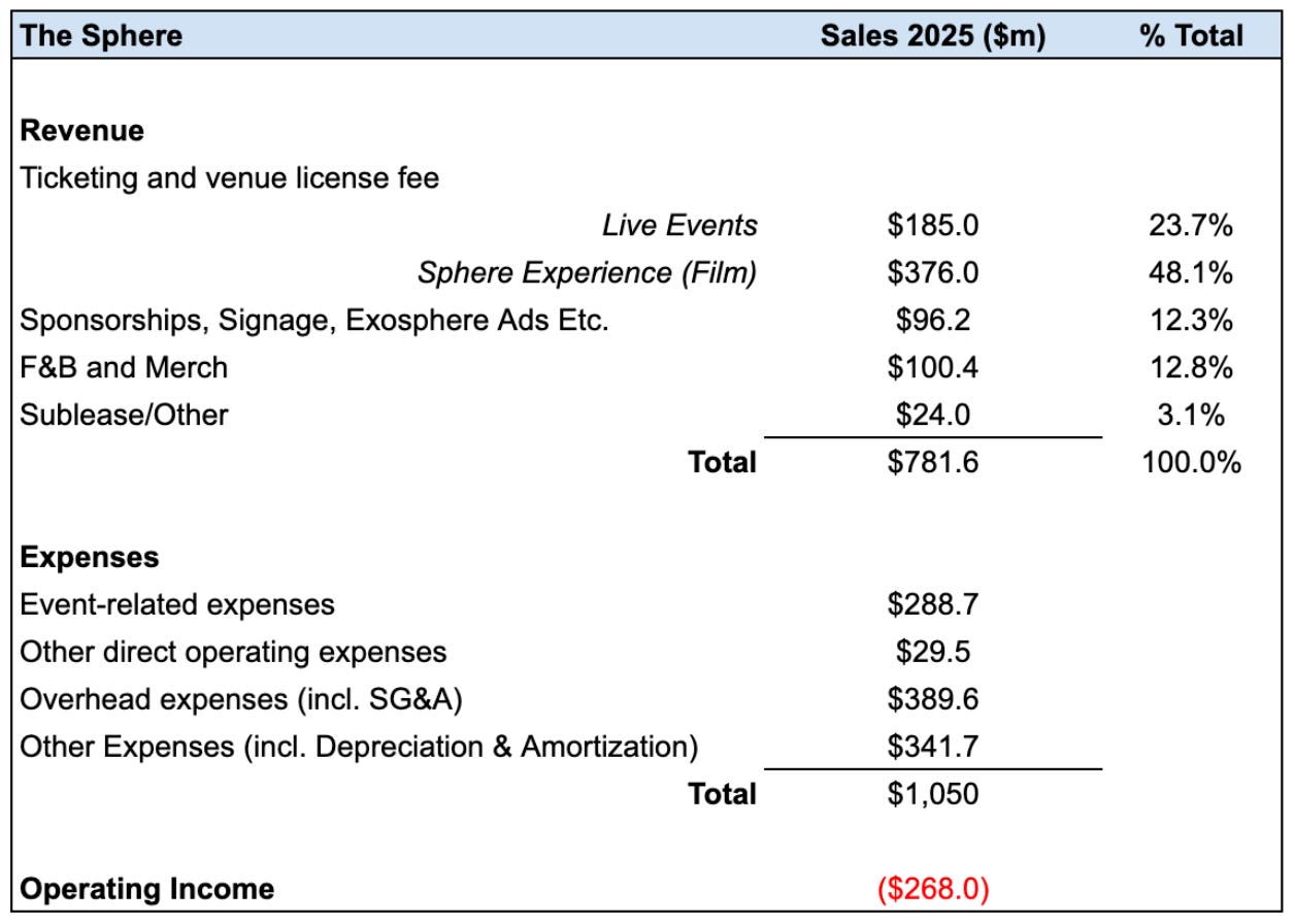 This is a best case scenario for the Sphere because the megastructure was not cheap to build at $2.3B (specifically, The Wizard of Oz is owned IP that the Sphere can milk and sell viewers super-marked up concession stands during multiple viewings a day).