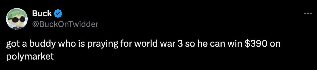 Having said that, there is an argument to be made that bringing in degen sports gamblers provides liquidity (as in, these same gamblers will punt on other random predictions) to help the world uncover information in the other categories.